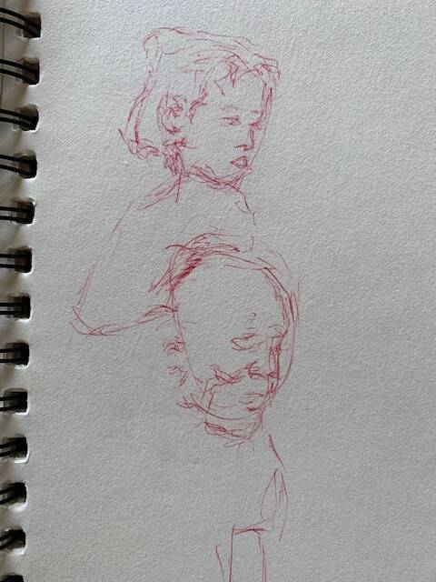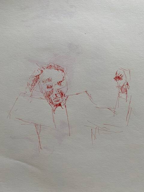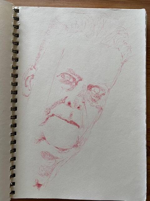 As it is of "vital" importance his daily pratice of scales, arpeggios, etudes etc ( on double bass ), budo and iaido ( japanese martial arts ), is as importante for Uota a time to time daily routine of making fast litle drawings, often portrets with a strikt rule of not using a correcting gum, (... every line counts, just like in music, every not counts, there is no wrong note, it depends on what come before and after that note, or line...)...Practice, pratice, pratice.