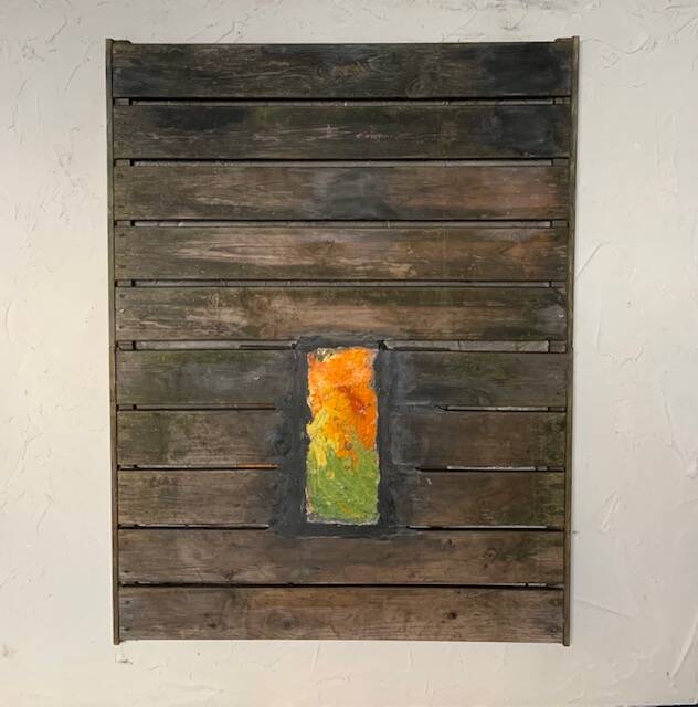 Charcoal, wood, acrylic, oil and 24 karat gold.