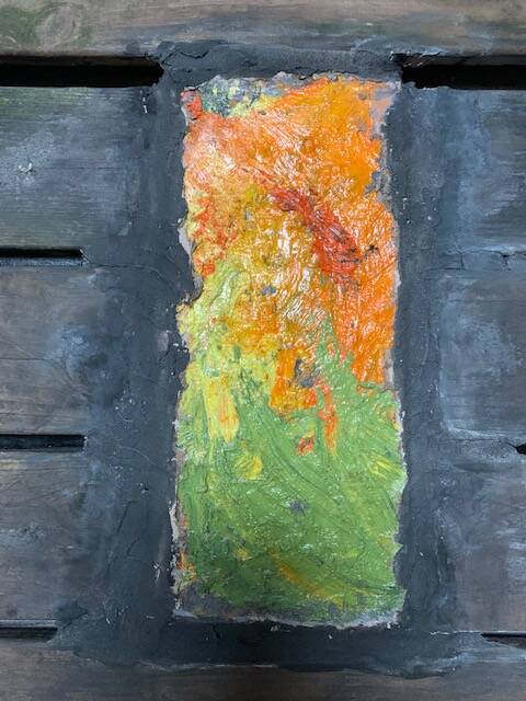 Black klay, acrylic, oil, concret/gesso on canvas and wood.